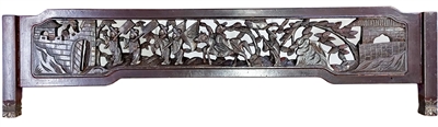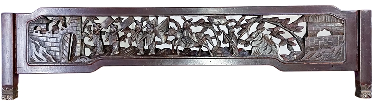 这块木雕板是古建筑正门门框上端的横木,叫“门楣”,一般都是由粗重的实木整板制成。古建按照建制,只有朝廷官吏所居府邸才能在正门之上“标示门楣”,一般平民百姓是不可有门楣的,哪怕你是大户人家,富甲一方,如果没有官场上的身份,也一样不能在宅门上标示门楣。