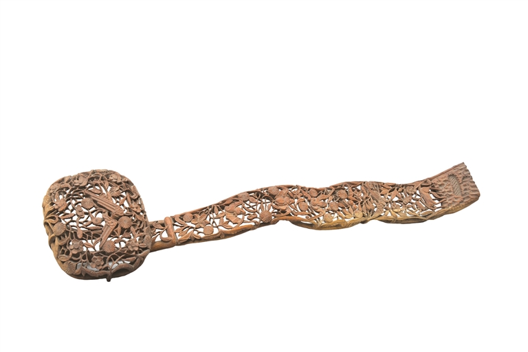 如意源于古有雅称“不求人”的搔背工具——“痒痒挠”。魏晋南北朝开始,如意就得到很普遍的使用,开始成为帝王和达官贵族的手中之物。如意的形制以柄首呈曲手掌式为主流,被赋予“回头即如意”的含义。唐代发展为扁平状,顶端弯折处演变为颈部,柄首为三瓣卷云式造型。此时的造型就不适合搔背了,逐渐从实用工具剥离。宋代以后,如意已由实用器变为陈设器,并和吉祥图案联系起来。尤其到了明清两代,如意发展到鼎盛时期,因其珍贵的材质和精巧的工艺而广为流行,以灵芝造型为主的如意更被赋予吉祥驱邪的含义,成为人们相互馈赠的一种“奢侈品”。
