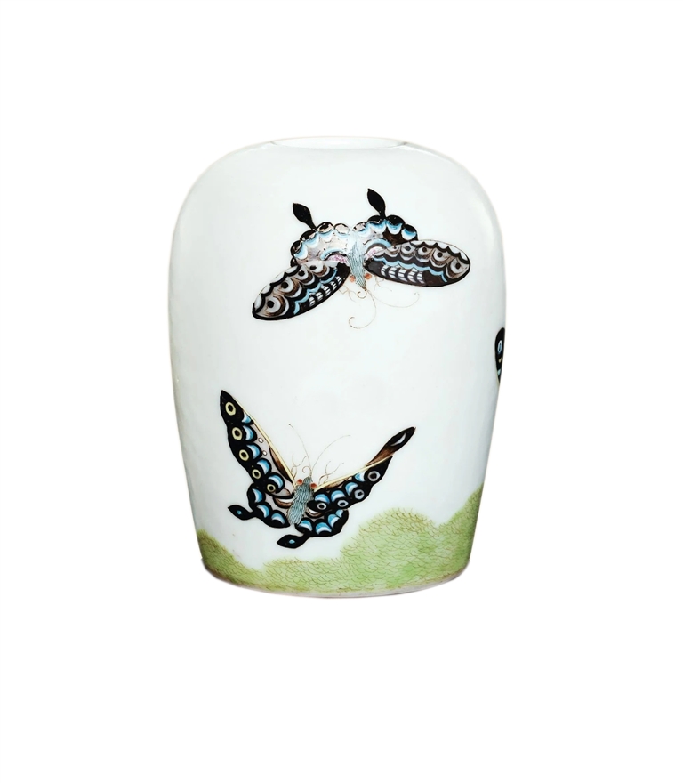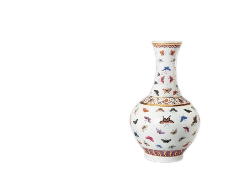 在近年来的艺术品拍卖市场上,带有蝴蝶纹的陶瓷器几乎涵盖各类窑口,尽管成交价格千差万别,但总能让人有眼前一亮之感。