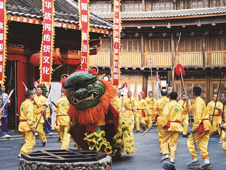 本报讯 3月30日,由福建省文化和旅游厅指导,以“海丝起点 清新福建”为主题的“东方甄选福建行”专场活动在永定土楼旅游景区启动首场直播。直播期间穿插福建非遗文化展演,宣传福建丰富多彩的非遗文化,让观众更加直观地感受“福文化”的魅力。值得关注的是,在石狮市文化体育旅游局、石狮市武术协会的推荐下,石狮市沙美狮阵武术馆受邀参加展演,不仅引来主播们的啧啧称赞,也在直播间收获一大波“粉丝”。