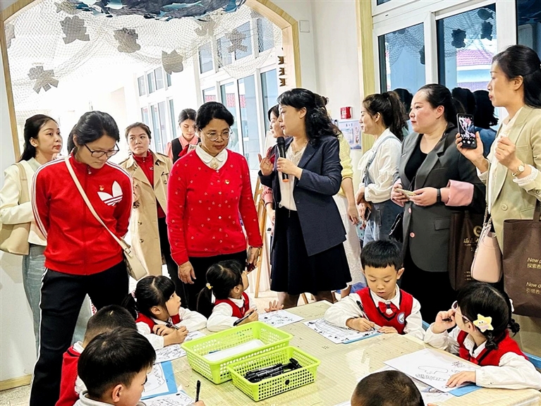 本报讯 3月28日,泉州市“名优校+”教育发展共同体联研活动暨连江县中小学名优校长(书记)培养工程观摩活动在石狮市万祥实验幼儿园开展。泉州幼师附幼、连江县中小学名优校长(书记)培养工程跟岗园长们及新疆昌吉市幼儿园、晋江市磁灶镇大埔中心幼儿园等教师代表一行在我市感受石狮特有的“渔悦教育”。