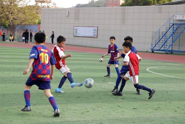 此次校园足球联赛,以“悦动精彩 始于足下”为主题,开展了五人制足球赛和足球技能挑战赛,全校共有336名学生报名参加。绿茵赛场上,足球小将们精神抖擞,场外小观众为小队员们加油、呐喊。“奔跑、传球、射门。”每一次精彩的传球、射门都引来同学们的欢呼声与掌声。