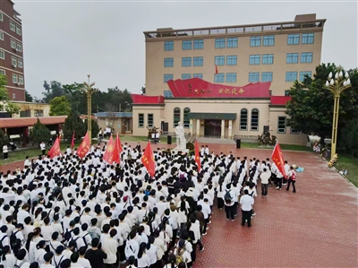 在李子芳烈士雕塑前,全体师生齐唱中华人民共和国国歌,敬献花圈、鲜花、默哀。随后,由学校广播台主持队朗诵《祖国说》,师生们以真挚的情感发出祝福祖国的最强音,表达对祖国的无限热爱和对美好未来的憧憬。全体师生在李子芳纪念馆前共同重温入团誓词,践行青春誓言。