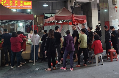 4月3日下午,在凤里街道龙华社区的老字号“王记润饼皮”铺人头攒动,市民排起几十米的长队争购“润饼皮”。