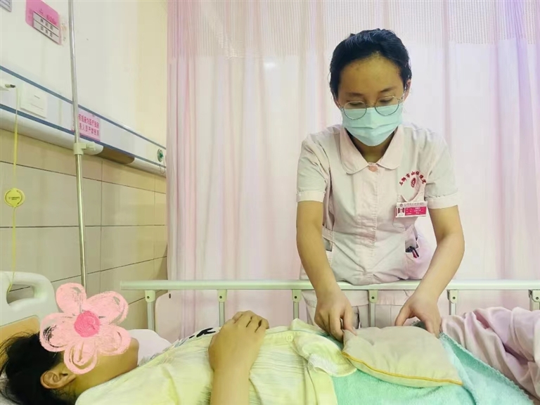 了解到蔡女士是产后宫缩痛,不一会,石狮市妇幼保健院产二区护士吴逸钊根据医生的医嘱,拿了一个热乎乎的“暖宝宝”放在产妇的肚子上。半小时过去后,吴逸钊再次来到蔡女士的身边,蔡女士立刻说道:“护士,这是什么,实在太神奇了,我的肚子不痛了。”吴逸钊说道:“这是我院妇孺国医堂新研发的热罨包,可以缓解您的子宫收缩痛。”