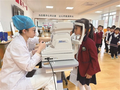 日前,石狮市第二实验小学邀请眼科专家进校园,为学生开展视力筛查,切实加强学生视力保护预防工作,引导学生科学用眼、健康护眼。检测过程中,医护人员细致地对学生进行视力检测,用专业智能的视力检测设备,严格执行规范化操作流程;认真为学生进行验光检查,并详细做好相关记录。视力检测结束后,检测人员将筛查结果及时反馈,以便学校、家长掌握学生的视力发展情况。 (记者 许小雄)