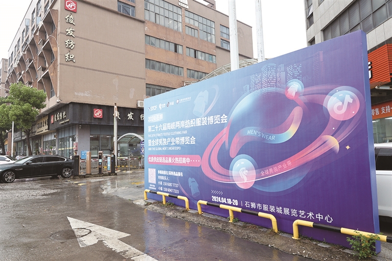 许多市民发现,近期在石狮市城区主干道以及许多商贸园区的道路两侧、出入口处都添了“新装”——第二十六届海峡两岸纺织服装博览会暨全球男装产业带博览会主视觉设计海报,紫蓝色为主色调的宣传板成为一道亮丽的城市风景线。