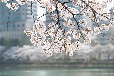 4月7日,韩国首尔石村湖附近的樱花绽放。近日,韩国首尔天气转暖,樱花陆续开放。(新华)