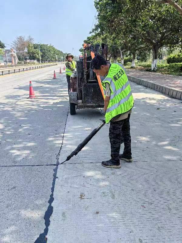 据了解,此次清灌缝处理工作现场摸排灌缝约23000米,覆盖港口大道多个关键路段。市城管局的专业团队采用先进的灌缝设备和技术,对路面裂缝进行精细化的填充和封闭。通过这一措施,不仅有效避免了雨水、尘埃等杂质对路面的侵蚀,提高路面的耐久性和平整度,且显著提升了道路的安全性能。