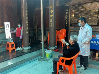 本报讯 4月9日,蚶江镇锦江村党总支、村委会联合厦门眼科中心泉州分院开展“关爱老人眼健康”公益义诊活动,组织专业眼科医务人员为锦江村老人开展“科学爱眼护眼”义诊活动,免费为锦江村老人进行视力疾病筛查,以实际行动关爱老人视力健康。