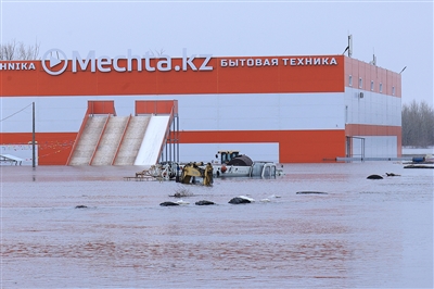 4月7日,哈萨克斯坦科斯塔奈州的一家电器商场被洪水淹没。哈萨克斯坦紧急情况部9日发布消息,哈北部地区自3月底以来因冰雪融水导致洪水泛滥,多个州宣布进入紧急状态,数万人被迫疏散。(新华)