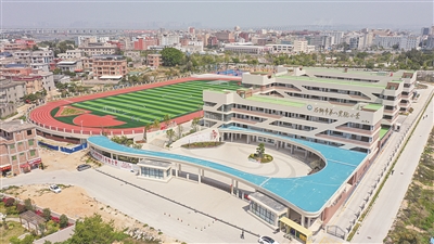 本报讯 连排现代化教学楼、400米标准田径场、十一人制标准足球运动场。4月10日,航拍下的石狮市第八实验小学,颜值担当,蔚为壮观。