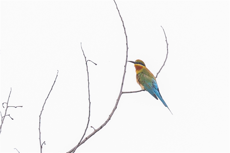 栗喉蜂虎在枝头上东张西望