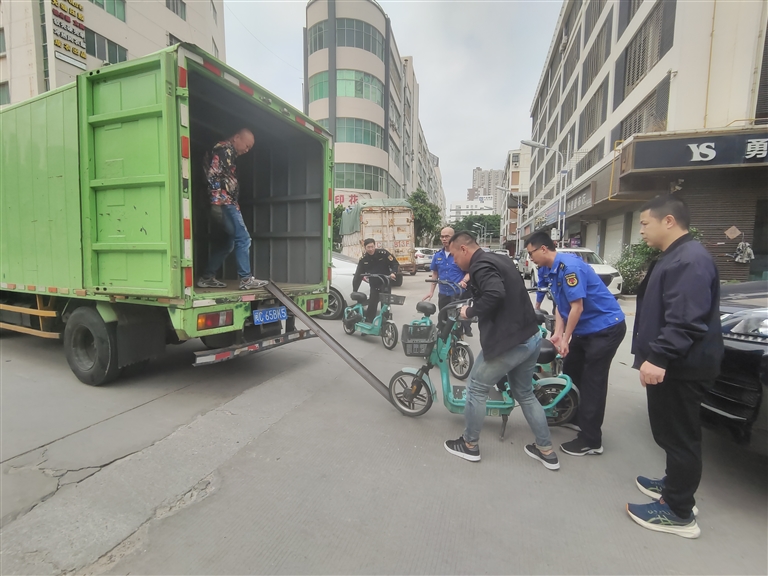 本报讯 4月10日上午,石狮市城管局组织执法人员,针对辖区乱停放且来历不明的共享电动车,开展专项清理整治行动,旨在维护市容环境,保障市民出行安全。