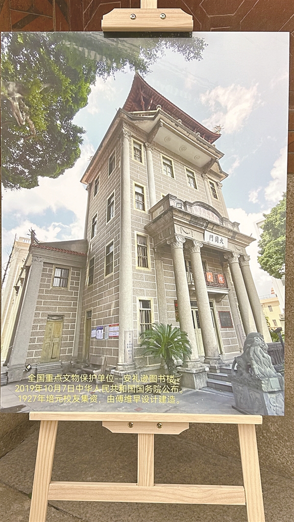 傅维早的建筑作品,都可以在故居50多幅展出的照片和文史资料里细细品读。修缮开元寺、文庙等,建设安礼逊图书楼、池塘湖番仔楼等。通过照片和建筑的文史资料,今人可以近距离欣赏静态的建筑杰作,并得以了解每座建筑的历史背景、设计理念和建筑风格。其中包括傅维早先生百年前设计、建造和修缮的四处“国保”建筑、一处省城市优秀近现代建筑等。