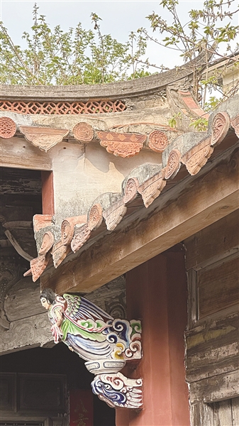 傅维早的孙子傅子祺是图片展现场最了解这座故居和这场图片展的人。据他介绍,这座闽南古大厝是1916年傅维早买下一块菜园后建造而成。原为两进三开间结构,经过后人修缮,百年后依然古色古香,其中许多建筑细节在闽南民居中独一无二。傅子祺带笔者走进天井榉头,这里的外檐斗拱处,筑有“飞天迎宾仕女拱”。傅子祺说,这尊飞天在造型上有别于开元寺的飞天,锦衣飘逸、丝带起舞,在重新修复后,成为一处知名的故居、一处重要景观,这一建筑工艺在泉州古民居中绝无仅有。傅子祺还带笔者在门楼处欣赏了半圆形的红砖柱,在前落大厅门前观看中西合璧的洋灰纹饰,以及东护厝客厅房顶的西式长条拼板天花和南洋铜雕灯饰等。这些建筑工艺无不彰显这位建筑大师的匠心。