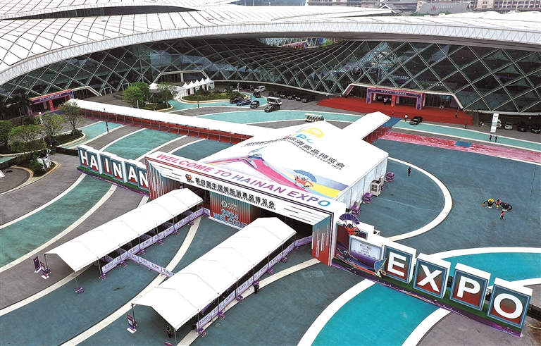 这是4月11日拍摄的第四届中国国际消费品博览会主会场海南国际会展中心(无人机照片)。第四届中国国际消费品博览会将于4月13日在海南省开幕。(新华)