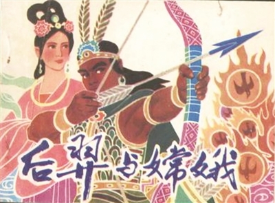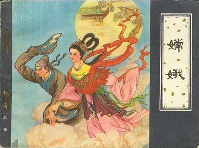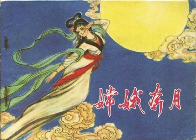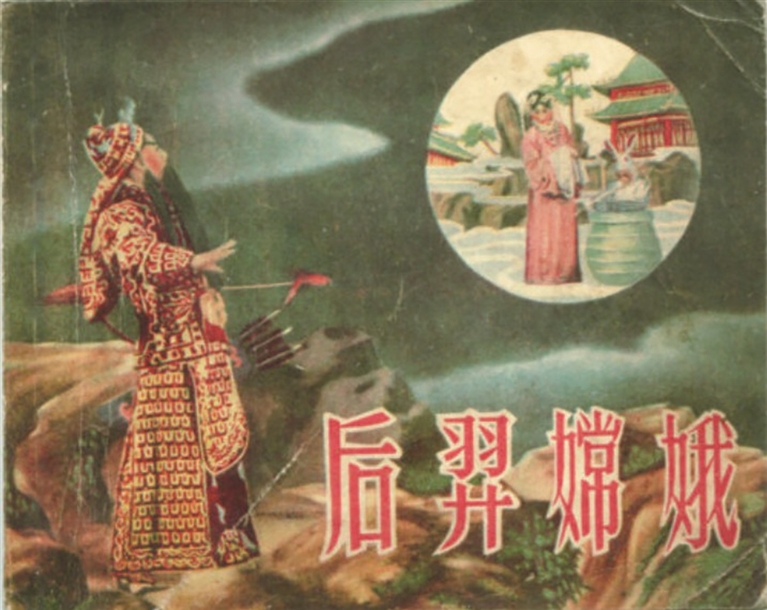1956年9月,由新兴京剧团演出,上海人民美术出版社出版的60开《后羿嫦娥》京剧版连环画(图1)。1957年4月,由伊黎编文、黄景绘画,朝花美术出版社出版的60开《嫦娥奔月》连环画(图2)。1980年6月,孙佳讯原著、吴其柔改编、吴冰玉绘画,上海人民美术出版社出版的64开“中国古代神话故事连环画”《后羿射日》连环画。1980年11月,由江苏省锡剧团演出,江苏省锡剧团编导组编剧,俞介君、王锡春、俞克平改编,王锡春绘画,周仓志、范爱全、骆仲琦摄影,江苏人民出版社出版的64开《嫦娥奔月》影剧版连环画(图3)。1981年3月,孙佳讯原著、吴其柔改编、吴冰玉绘画,上海人民美术出版社出版的64开“中国古代神话故事连环画”《嫦娥奔月》(图4)。1981年3月,根据孙佳讯《后羿射日》,由程中岳改编、徐有武绘画,浙江人民美术出版社出版的64开《嫦娥奔月》连环画(图5)。1982年3月,蒲松龄原著、白藻改编、牛双印绘画,天津人民美术出版社出版的64开“聊斋故事”《嫦娥》连环画(图6)。1983年4月,褚斌杰原著,李天培改编,张文斌、何纬仁、乌永柳绘画,贵州人民出版社出版的64开《后羿与嫦娥》连环画(图7)。1983年6月,袁玮大改编、诸葛增仁绘画,天津人民美术出版社出版的64开《后羿与嫦娥》连环画(图8)。1984年3月,中国旅游出版社出版,中国国际图书贸易总公司发行的16开《羿射九日与嫦娥奔月》(英、法、日文版)连环画(图9)。1985年3月,由紫辰编文、楼家本绘画,人民美术出版社出版的48开“中国古代神话故事”《嫦娥奔月》连环画(图10)。1988年1月,由荆其柱改编,刘文为绘画,中国少年儿童出版社出版的24开《中秋节的故事》连环画(图11)。