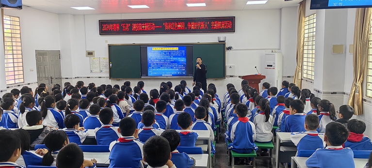 本报讯 日前,“五老”进校园主题活动走进石狮市峰山小学,来自石狮市新四军研究会、市关工委宣讲团的讲师周国球受邀,为孩子们作“弘扬铁军精神,争做时代新人——石狮籍新四军故事会”主题宣讲。