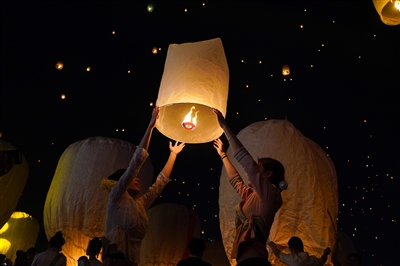 西双版纳:喜迎泼水节 放飞孔明灯