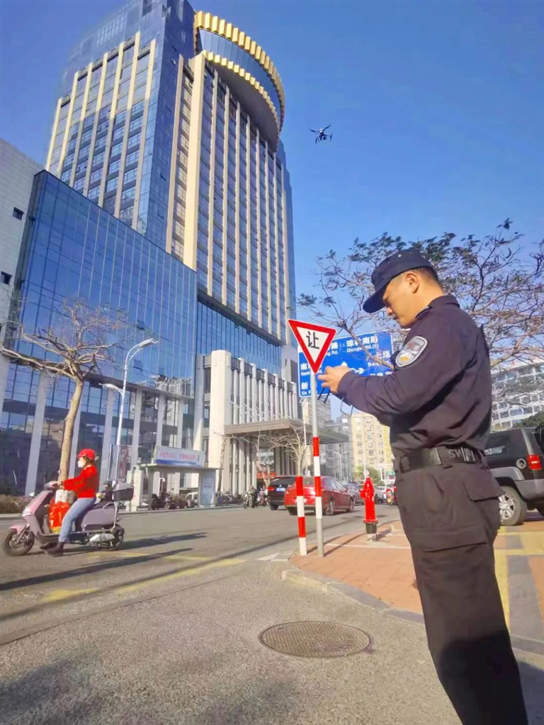 在此基础上,该大队还聚焦空中科技赋能,运用信息科技赋能警务实战,启动空地巡防勤务模式,巡逻警力利用警用无人机对城区主干道、中心广场、景区、繁华商业区等重点区域及人员密集场所开展空中巡逻。通过警用无人机的探查,准确掌握重点区域内的车、人流量等现场情况,摄录低空照片影像,并在飞行期间分区进行空中构图、三维建模,“圈出重点区、绘出巡逻线、标出必巡点”,指导地面科学部署警力,形成了空地联勤全覆盖的巡防格局。与此同时,不断加大“低慢小”航空器飞行管控力度,维护正常的飞行秩序和安全,通过空中智慧巡防,有效预防制止社会面各类违法犯罪活动。