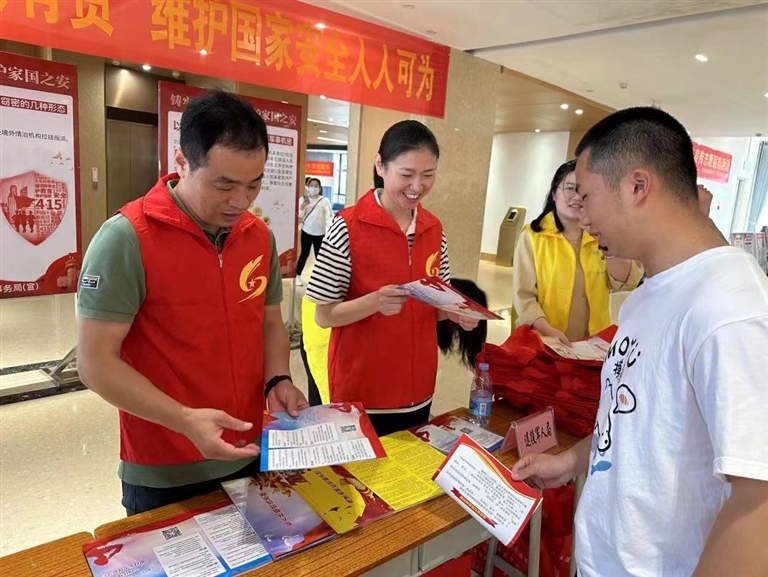活动现场,退役老兵熊晓宝开展主题宣讲,以亲身经历讲解维护国家安全的重要性。工作人员通过悬挂横幅、摆放主题宣传展板、分发宣传手册及现场讲解的方式,向学生宣传《中华人民共和国国家安全法》《中华人民共和国保守国家秘密法》等法律法规,并结合案例警示,引导广大学生时刻牢记国家安全,增强安全保密意识。