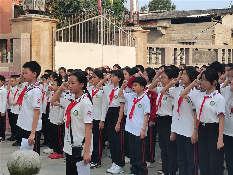 本报讯 今年是莲塘村旅菲抗日义士蔡派恭殉难82周年。4月15日,蚶江镇莲塘村党委、村委会、石狮市实验小学蚶江校区、莲塘村关工委在蔡派恭烈士纪念亭开展“缅怀抗日英烈,共筑爱国情怀”祭扫活动,以此追寻英雄足迹,继承先烈遗志,增强少先队员责任感和使命感。