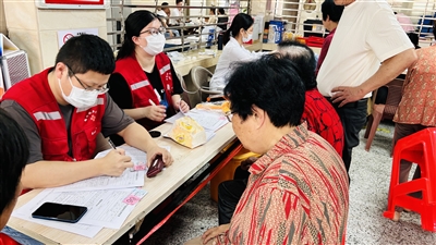 本报讯 4月17日一早,锦尚镇锦尚村的办事大厅很是热闹,65周岁老年人体检服务正在这里进行。“听说医护人员要来帮我们体检,我们就赶紧过来,怕排不上号。”锦尚村邱大爷介绍,一大早,村里的老人有序前来等待体检,医护人员和志愿者在帮老人做好健康档案登记后,就安排老人有序排队体检,让老人足不出村就在“家门口”享受健康服务。 (记者 邱育钦)