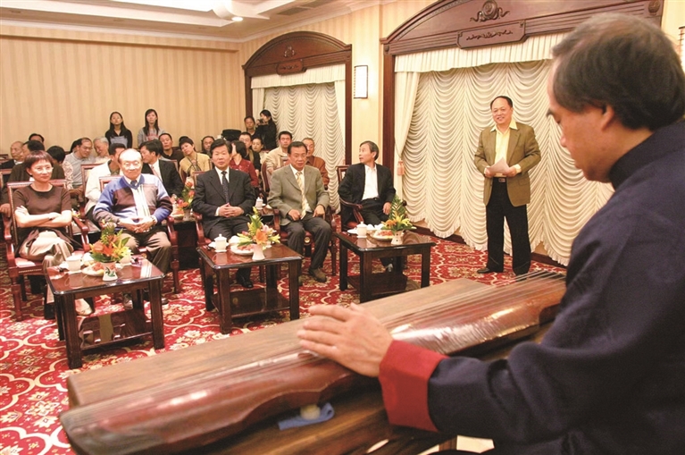 身为泉州籍名人、收藏家,何作如也陪同金庸践行这次“泉州文化之旅”。他带着珍藏的稀世古琴,领着李祥霆大师,在泉州酒店向金庸和乡亲们奉献了一席文化盛宴。古琴大师当场弹奏《流水》《酒狂》等传世名曲。