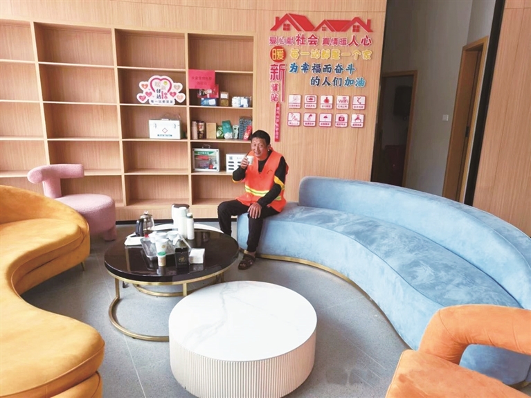 本报讯 4月18日,记者在永宁镇西偏村采访时了解到,该村充分发挥“党建+”邻里中心、新时代文明实践站的平台作用,对位于旅游商品一条街宝盖山商圈的暖心驿站进行改造提升,为快递员、外卖配送员、环卫工人、网络车驾驶员等户外劳动群体“筑”了一处冷可取暖、累可歇脚的“爱心港湾”。