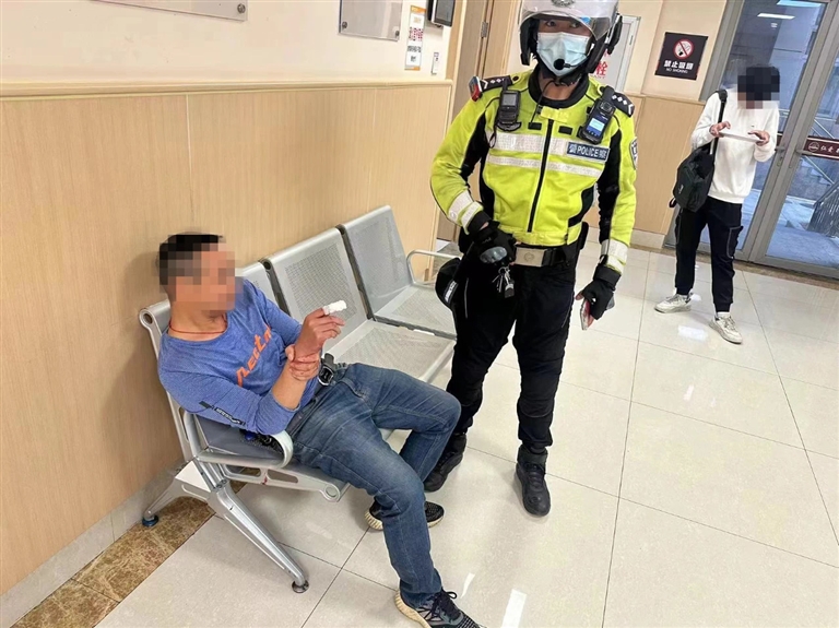 经了解,该患者在操作机台时手指被机床压到,工友赶紧送他上医院,从服装城开车到医院,路上车流量太大,直到遇见铁骑队员,才请求帮助开道护送。铁骑开辟了绿色通道,带领求助车辆一路疾驰,原本9分钟的路程,仅用了4分钟。将患者送到医院安置妥当后,铁骑队员继续前往路面执勤。
