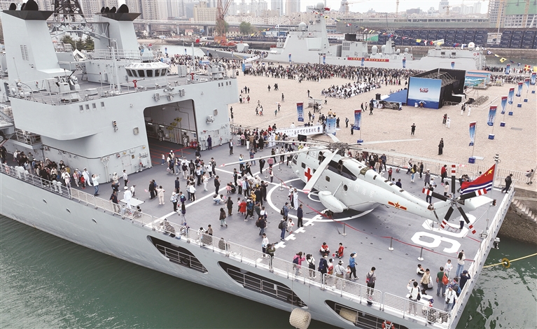 连日来,2024年海军成立纪念日舰艇开放活动在青岛举行。开放的舰船多数参加过亚丁湾护航、出国访问、联演联训等重大任务。预约前来参观的市民游客络绎不绝,人们不仅能登舰参观,还能与海军官兵面对面交流、参加军事特色科目体验、了解海军特色文化等,零距离感受人民海军舰艇的风采和魅力。