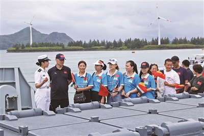 舰艇靠泊后,欢迎人群分批次登舰参观。