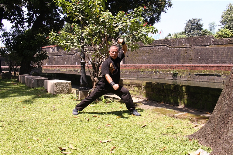 五祖拳,是中国传统拳术中的南拳之一,是泉州地区流传最广的一个拳种,也是福建省七种民间传统武术之一。黄明看,今年六十有八,迁居菲律宾已有40年,年轻时师从蔡明扬(王招来女婿)。从小爱习武,有着良好基础与练武天分的他,一接触五祖拳便一发不可收拾,十分痴迷。操练五祖拳成为他每天的“必修课”。可以说,除了陪伴家人与操办公司事务之外,黄明看每天少不了的一件事就是练拳。