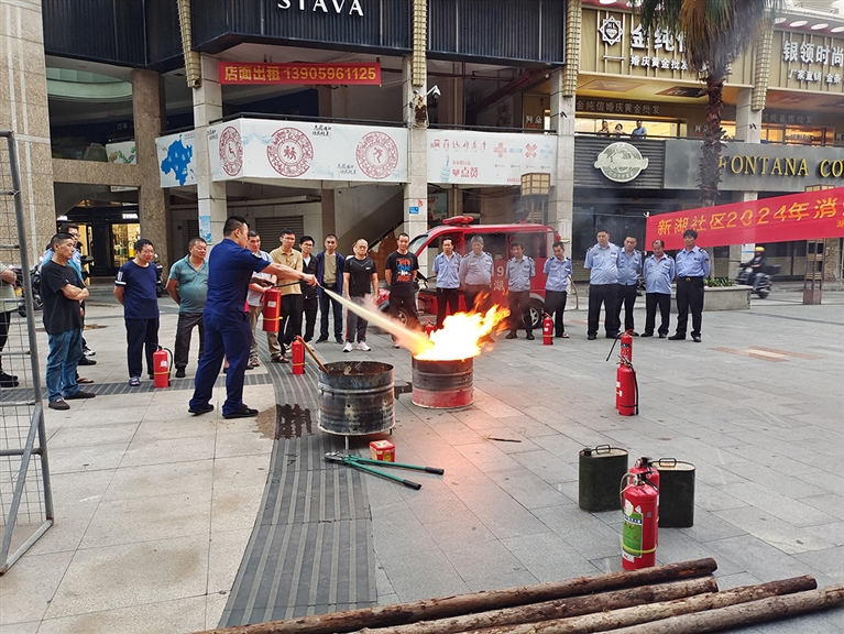 本报讯 4月22日,湖滨街道新湖社区联合街道办事处、市消防救援大队、湖滨派出所、湖滨农贸市场,在步行街开展消防安全演练,积极提升辖区居民群众、商户的消防安全意识,为构筑平安和谐的社区环境奠定坚实的基础。