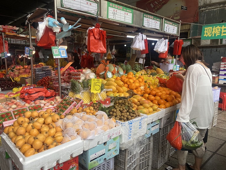 在宝岛中路一家水果店,笔者看到枇杷、榴莲、樱桃、奇异果、西梅也是热销款,店里卖的枇杷每斤20元,樱桃每斤113元,榴莲每斤超过130元,“这几种水果的销路很不错,我基本上每周都需要去进货。”店主告诉笔者,泰国东部榴莲季已经拉开上市序幕,货少加上刚上市,价格不会很低。泰国金枕榴莲4月下旬陆续起量,约在5月进入高峰期,泰国榴莲整体货量将随之大幅上涨,这也是全年中榴莲口感最好、整体品质最稳定的季节。随着泰国东部金枕涌入,再过几天,市场的货量会更多,“五一”过后,榴莲价格将开始逐渐走低,走货体量持续增长。(张诗瑶)