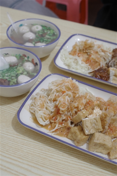 豆干刚油炸出锅香喷喷的,Q弹的面条在清爽的豆干香气中,一口下去,滋味妙不可言。豆干面的吃法也灵活多样,极具闽南特色。当你品尝到一碗热气腾腾的豆干面,会发现泉州人大胆的调味方式。你可以选择直接食用,感受那由面饼、豆干组成的完美组合;也可以根据自己的喜好,佐以芥辣、蒜蓉酱、沙茶酱、花生酱等多种调味酱料。每一种酱料都能为豆干面带来不同的风味,使其更加丰富多元。