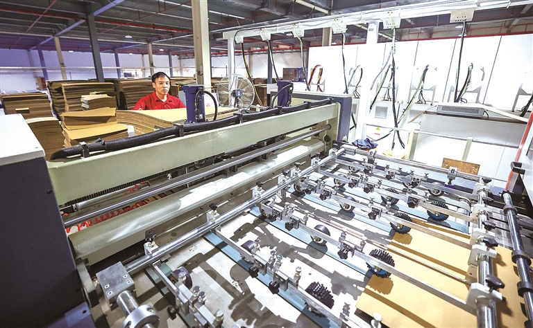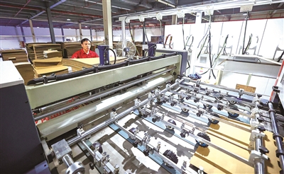 本报讯 4月23日上午,记者在位于石狮祥蚶新材料产业园区的泉州市百丰环保科技有限公司二号生产车间看到,新组装的两条智能纸箱成型生产线进入机台设备调试。在技术人员的操作下,原料纸板快速地在流水线上通过,长达120多米的自动化纸箱生产线就能完成纸板印刷、开槽、折叠黏合、打包堆垛等工序,实现从纸板到纸箱的全自动化生产。