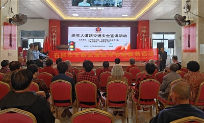 本报讯 4月25日上午,石狮交警大队永宁中队民警走进下宅村,向200余名老人开展交通安全宣讲活动。