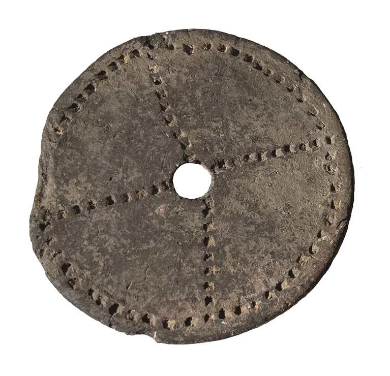 陶器纺线工具主要是用陶土烧制的“陶纺轮”,在菜园新石器时代遗址发掘出土有四种类型。
