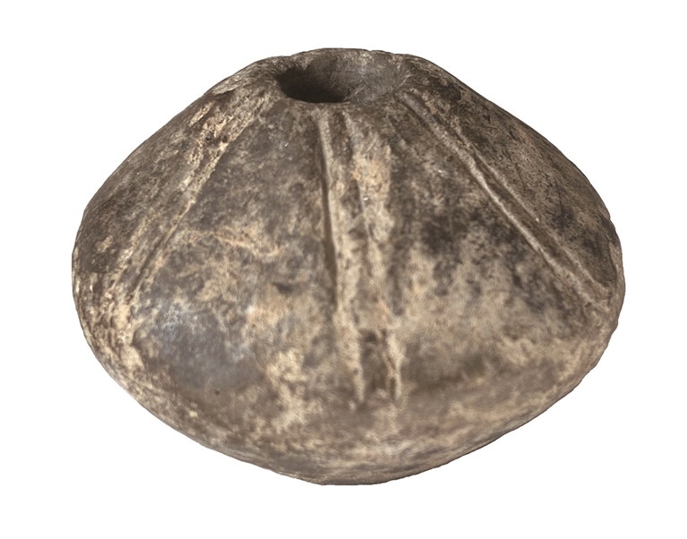 灰陶菱形纺坠轮(图11),泥质灰陶塑成,柱状菱形,高3、腹径4.5厘米,器表刻画竖条纹饰,中间有空,可插旋杆,可用来纺线。