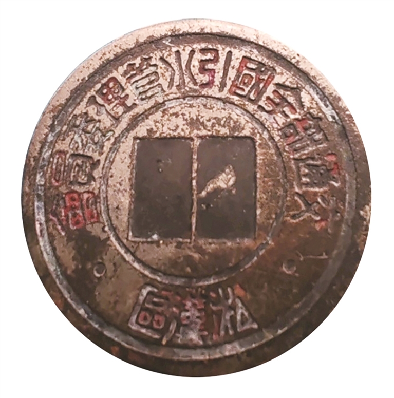 图8为交通部全国引水管理委员会闽浙区办事处证章,铜质,直径2.8厘米。