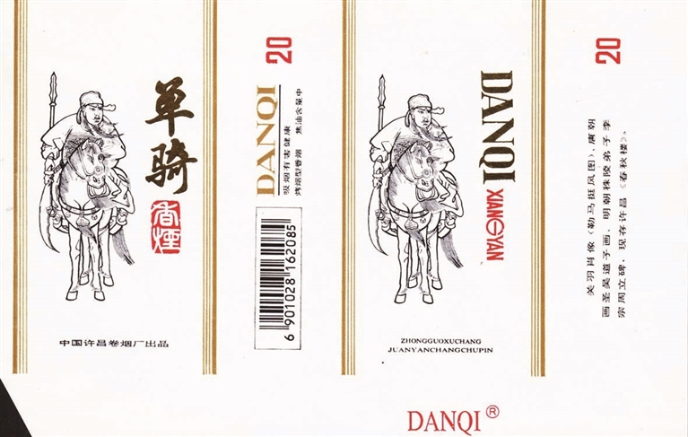 画圣吴道子(约680—759),又名道玄,阳翟(今河南禹州)人。唐代著名画家,开元年间以善画被召入宫廷,历任供奉、内教博士、宁王友。曾随张旭、贺知章学习书法,通过观赏公孙大娘舞剑,体会用笔之道。擅佛道、神鬼、人物、山水、鸟兽、草木等,尤精于佛道、人物,长于壁画创作。20世纪90年代,中国许昌卷烟厂出品的“单骑”烟标(图11),主版武圣关羽持刀跨马图,就是吴道子的画作,侧标简要介绍道:“关羽肖像《勒马挺风图》,唐朝画圣吴道子画、明朝秣陵弟子李宗周立碑,现存许昌春秋楼。”