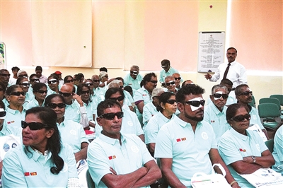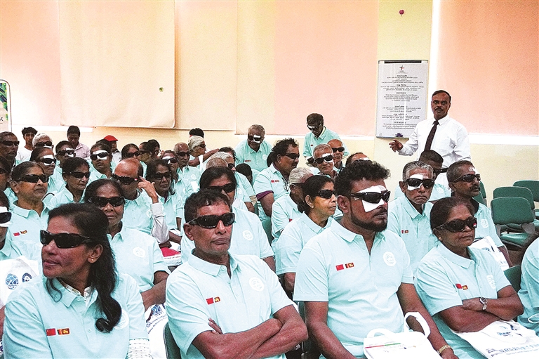 4月25日,在斯里兰卡科伦坡,当地患者参加“光明行”活动仪式。