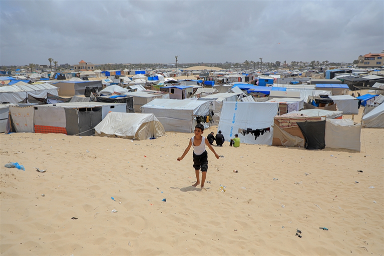 4月27日在加沙地带南部城市拉法拍摄的一处临时营地