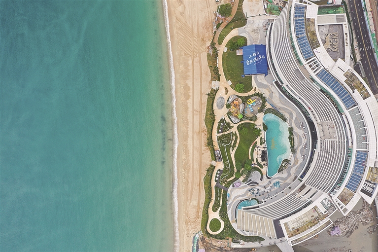 小梅沙度假区新落成的酒店与海滩(4月29日摄,无人机照片)。作为深圳首个文旅业态城市更新项目,小梅沙度假区将于“五一”假期试营业。小梅沙片区改造项目依托天然山海资源,以“宜居、宜业、宜游”的山海连城理念整体改造,打造3.9平方公里的都市亲海生活空间和滨海旅游目的地。(新华)
