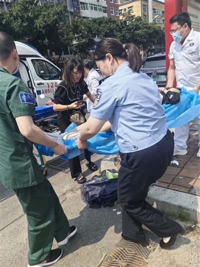 本报讯 4月29日10时许,石狮法院门口发生一起交通事故,一名年轻女子倒在路中,紧急时刻,一名热心群众将其带至路旁,法院安检带班法警王玲玲知晓后,迅速带上急救药箱与热心群众一起展开现场急救。