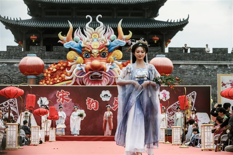 “五一”假期期间,浙江省建德市梅城镇严州古城举办首届“宋·潮国风艺术节”,为游客送上一场沉浸式宋韵文化盛典。近年来,当地积极推广严州宋韵文化元素,展示传统宋韵文化之美。(新华)