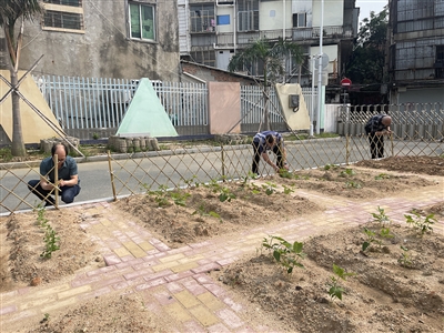 “松土、挖坑、立杆、培土、踩实、绑篱笆、加固……”当天,在学校有关负责人的陪同下,几位爷爷动作熟练,配合默契,很快就编织出一排排坚固又好看的篱笆围栏。“在篱笆围栏的衬托下,整个菜园看起来更加春意盎然!”一位老师告诉记者,目前,菜园里种有玉米、南瓜、空心菜……孩子们每天户外运动时,会前往菜园浇灌、拔草、除虫、记录等等,能有效激发孩子们探索植物生长奥秘的热情。