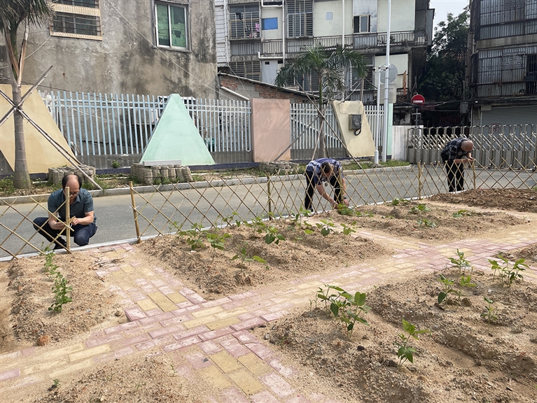 本报讯 近日,石狮市琼林中心幼儿园关心下一代工作委员会“五老”施纯雄、王荣火同几位热心祖辈家长来到幼儿园里,发挥祖辈的劳育优势,为幼儿园的小菜园建设贡献自己的一份力量。